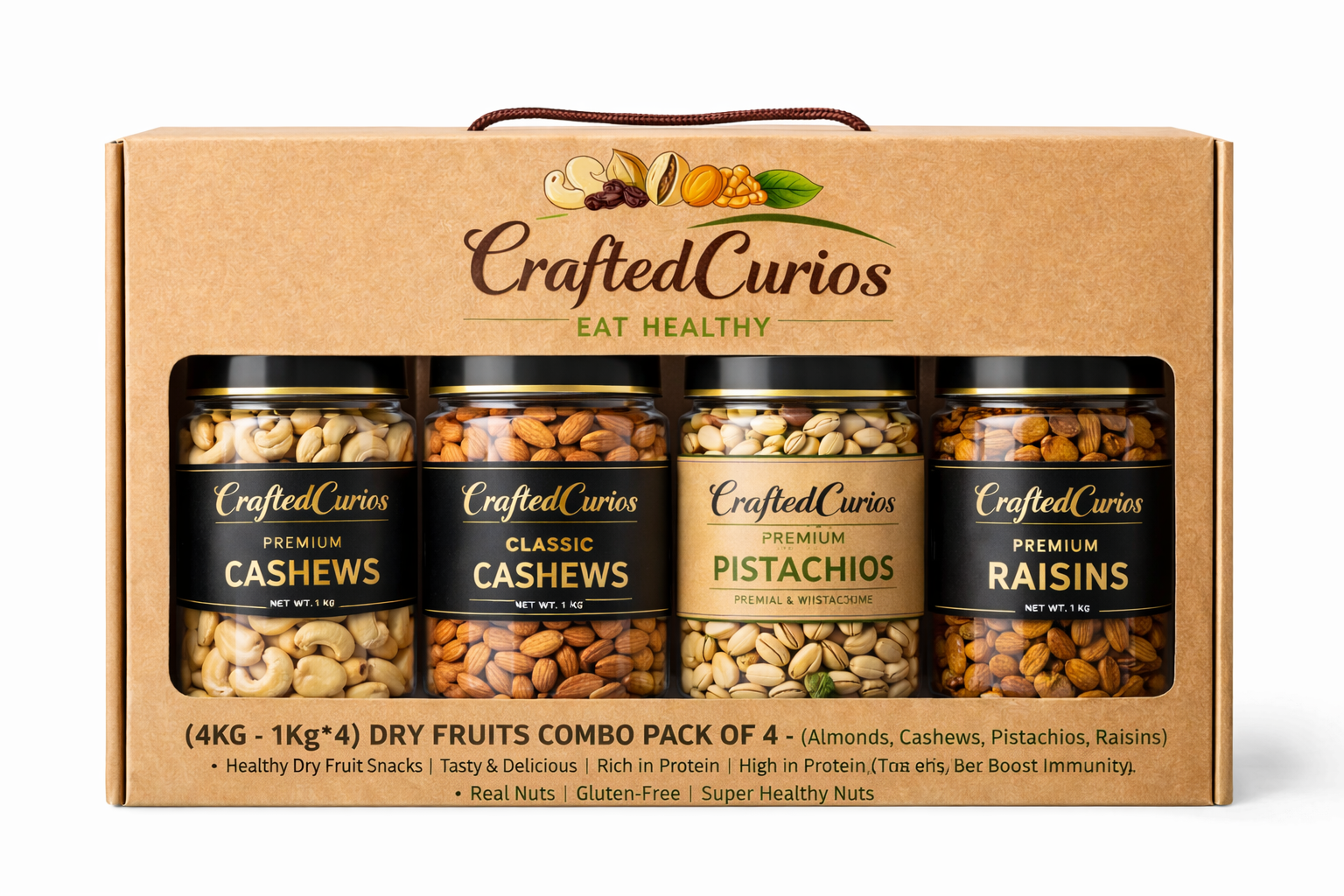 (4KG – 1Kg*4) Dry Fruits Combo Pack of 4 – (Almonds, Cashews, Pistachios, Raisins) – Healthy Dry Fruit Snacks | Tasty & Delicious, Rich in Protein | High in Protein, Fiber & Boost Immunity | Real Nuts | Gluten-Free | Super Healthy Nuts